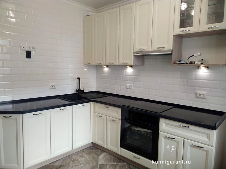 Кухня выполнена в фасадах матовая эмаль- МДФ с фрезеровкой "Мария"